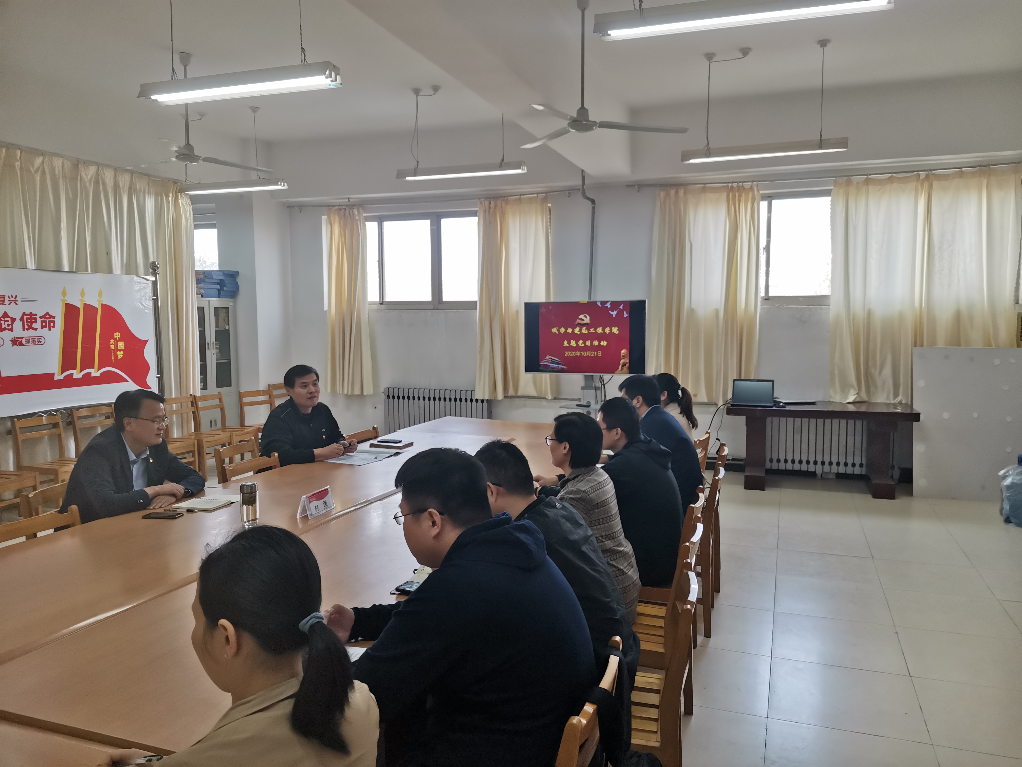 2020年10月21日下午2点,永利集团3044教工第一党支部在理工楼2321会议室开展了主题党日学习活动,集中学习习近平在中央党校(国家行政学院)中青年干部培训班开班式上发表的重要讲话以及习近平总书记在教育文化卫生体育领域专家代表座谈会上的讲话。城建学院党总支副书记徐海波主持会议,校党委委员、统战部部长林勇参加会议。