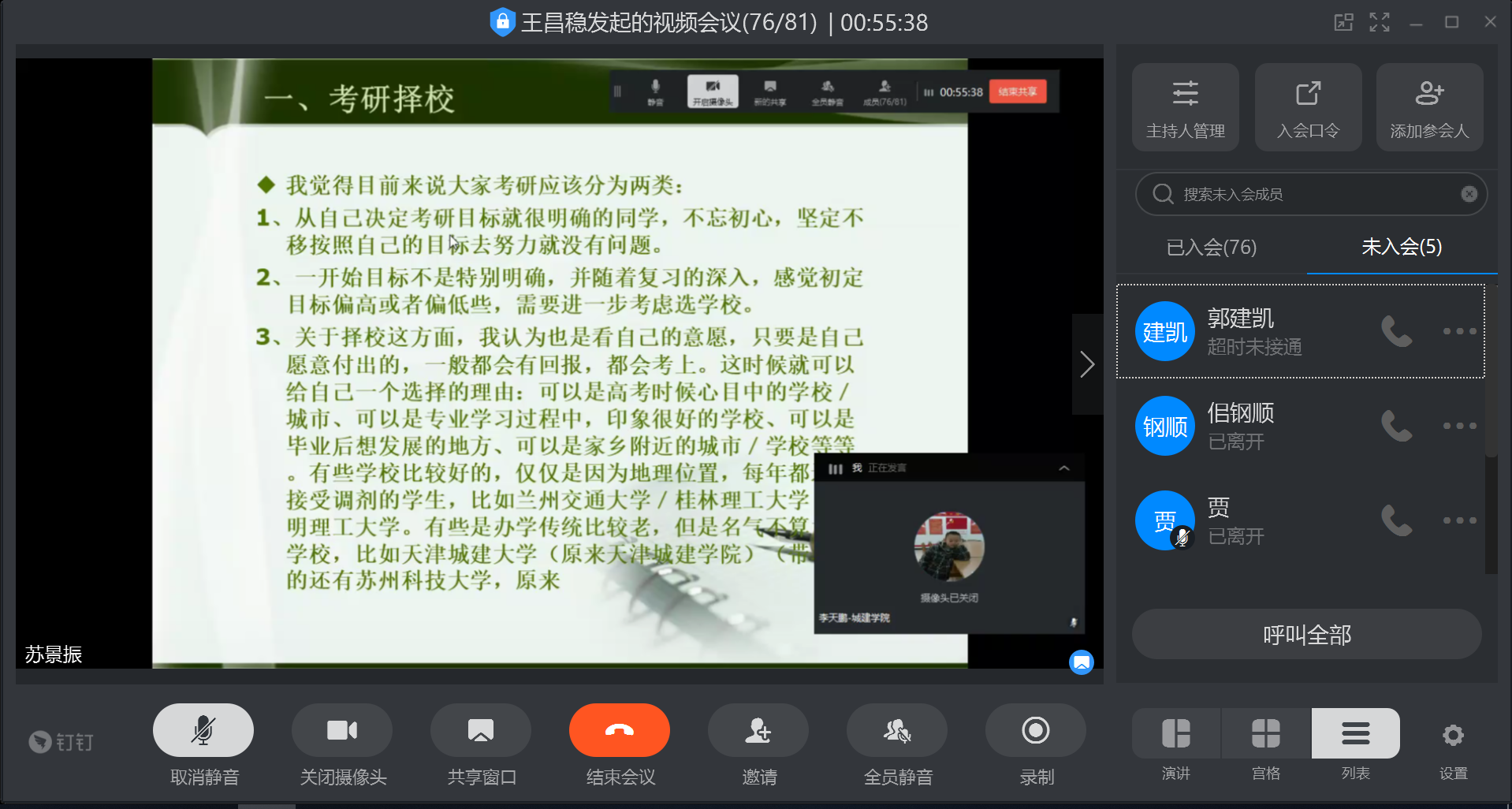 2020617日上午9:00-10:30,我院给排水科学与工程专业采用钉钉视频会议的形式组织召开了2017级考研动员会(既经验交流会)。给排水科学与工程专业全体教师、2017级全体同学及20182019级部分同学参加此次视频会议。