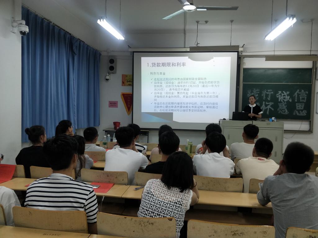 为进一步加强学生诚信教育,做好2019届贷款毕业生助学贷款工作,教育受助学生树立勤俭意识,珍惜国家、学校和社会的关心,强化资助育人效果,永利集团3044于6月4日晚在理工楼2318举行“践行诚信,心怀感恩”主题宣讲会。全体2019届贷款毕业生参加了此次宣讲会议。